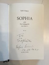 Herr Schami stand schon um 19Uhr, gleich nach Türöffnung, an einem Stehtisch und hat die Bücher signiert. Ich war ein wenig zu schüchtern und so kam es bei mir raus, dass in meinem Buch Sophia statt Safia steht. Nun sei’s drum, ich freue trotzdem sehr über meine erste Widmung.
