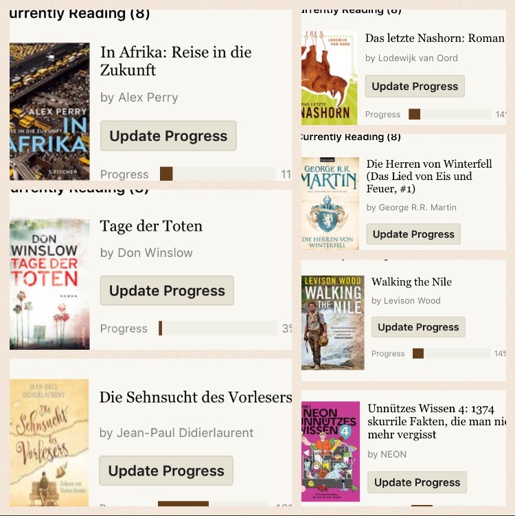so, ich habe mich nun mal wieder an den PC gesetzt, da nun doch seit einiger Zeit kein Post mehr kam (ausser natürlich den Lesemonat, bei dem versuche ich immer ein wenig up to date zu sein). Ich habe mir überlegt was ich diesen Monat im Juni so alles lesen könnte. Natürlich ist mein SuB (Stapel ungelesener Bücher) überhaupt nicht geschrumpft sondern eher gestiegen! In meinem Goodreads Account (bin dort unter dem Namen ilovebooks_ch aktiv und freue mich immer über neue Freunde!) hab ich in meinen currently readings gesehen, dass ich einige Bücher angefangen und noch nicht beendet habe. Grosses shame on me =S Also war somit klar was für den Juni auf meiner To Be Read Liste drauf sein wird.