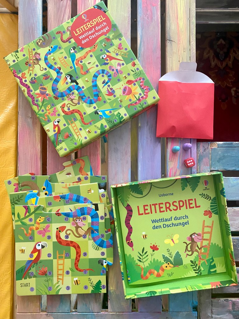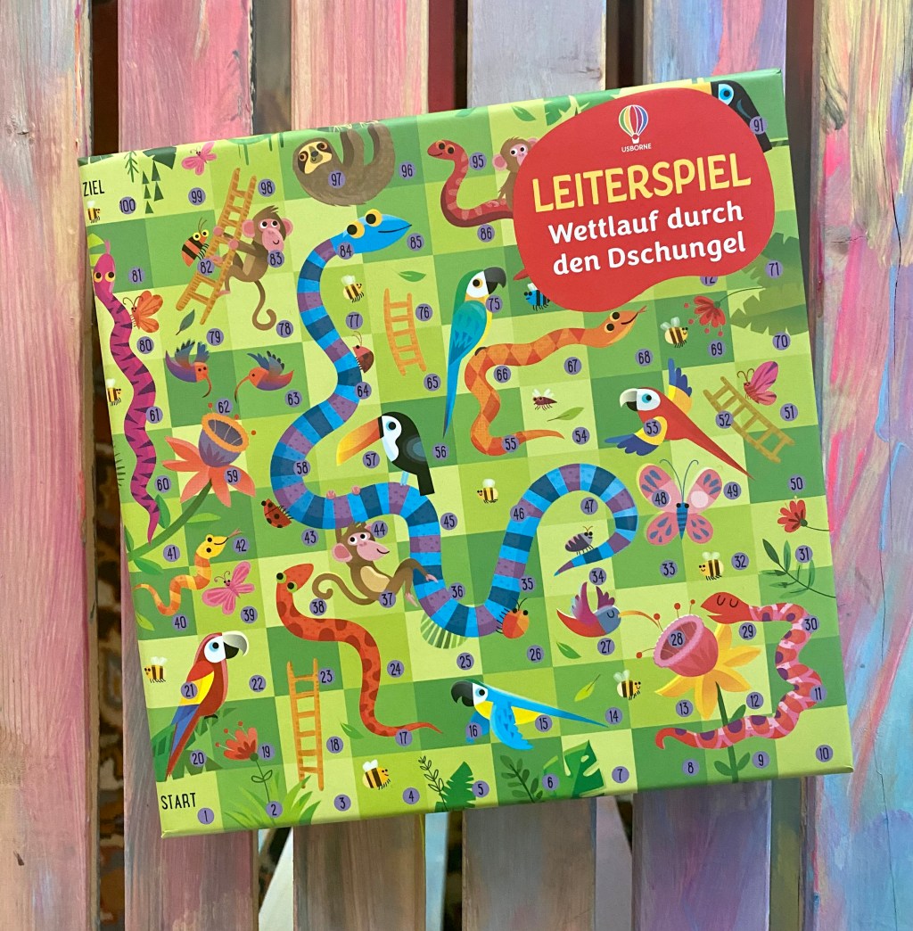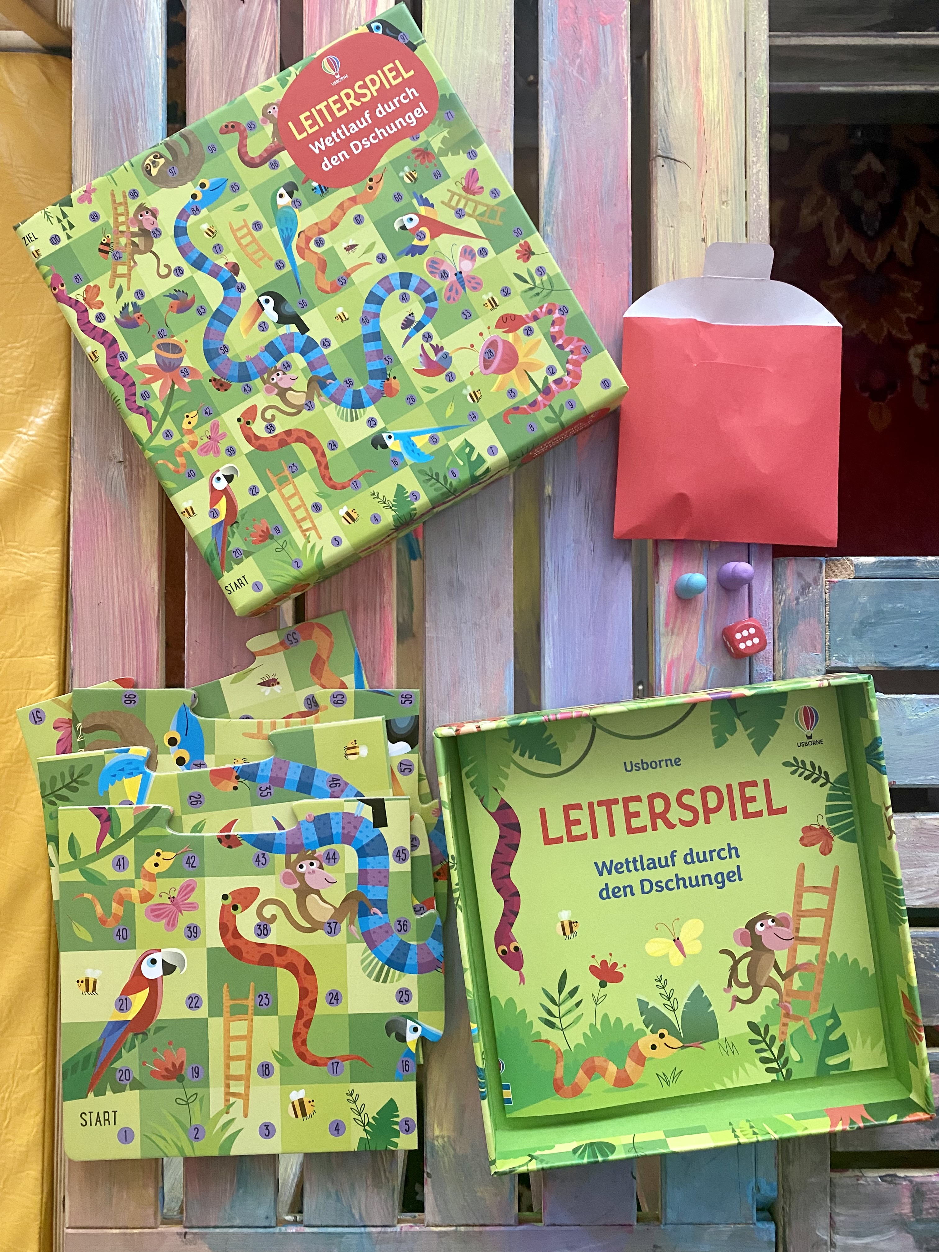 Das Spielmaterial besteht aus einem farbenfrohen Spielbrett, das eine abwechslungsreiche Landschaft mit Leitern und Dschungeltieren zeigt. Die Spielfiguren sind aus hölzernem Material gefertigt und ansprechend gestaltet. Die Qualität des Spielmaterials ist insgesamt hochwertig, was eine lange Lebensdauer des Spiels gewährleistet.