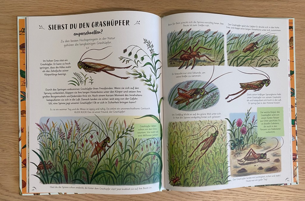 Jede Doppelseite des Buches widmet sich einem Tier oder eben einem Wunder der Natur. Die farbenfrohen und ansprechenden Illustrationen sind ein wahrer Augenschmaus und laden dazu ein, sie gemeinsam mit Kindern genauer zu erkunden. „Wunder der Natur“ bietet nicht nur spannende Geschichten über unsere Natur und ihre Bewohner, sondern auch eine visuelle Entdeckungsreise, die Groß und Klein fasziniert.