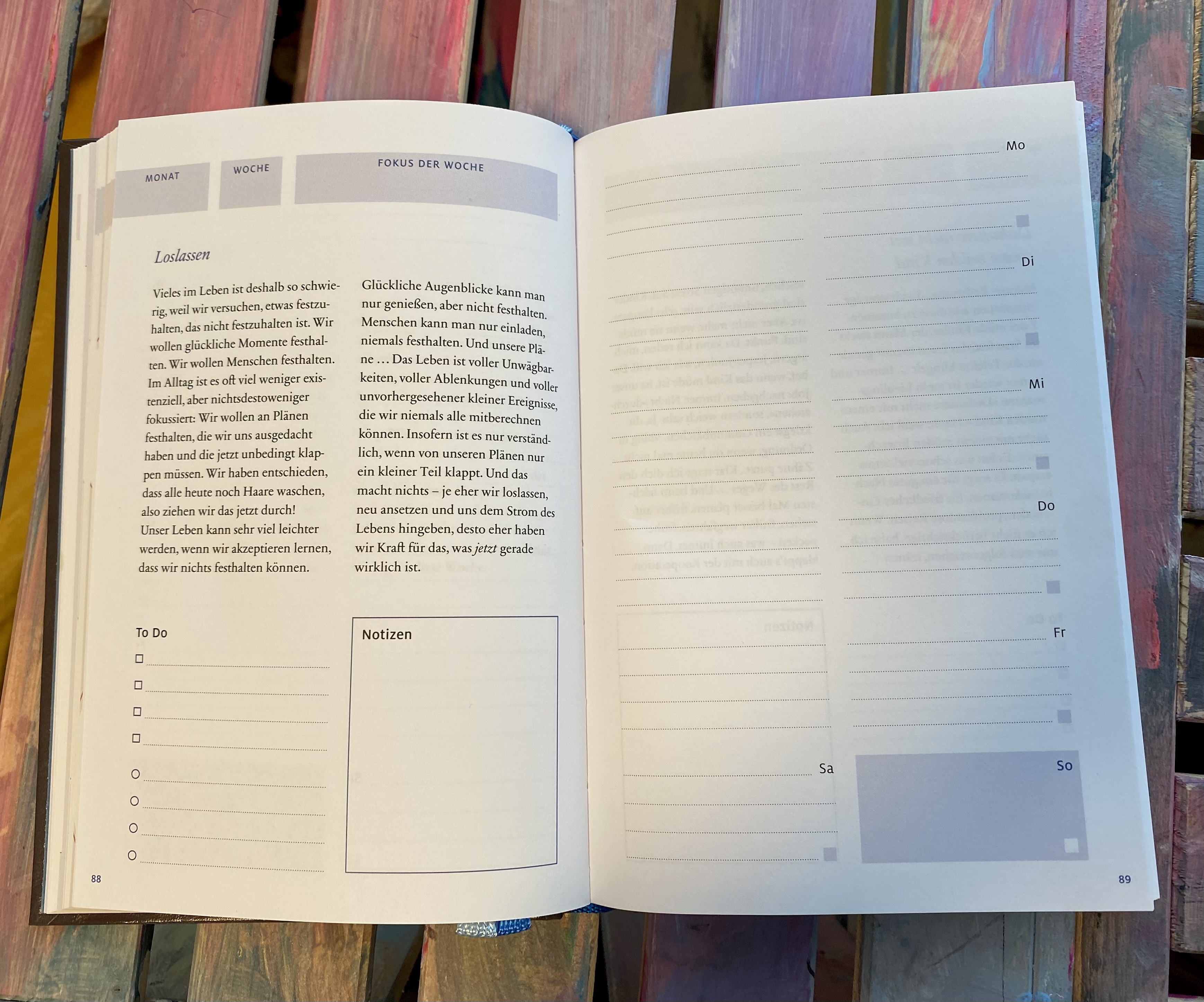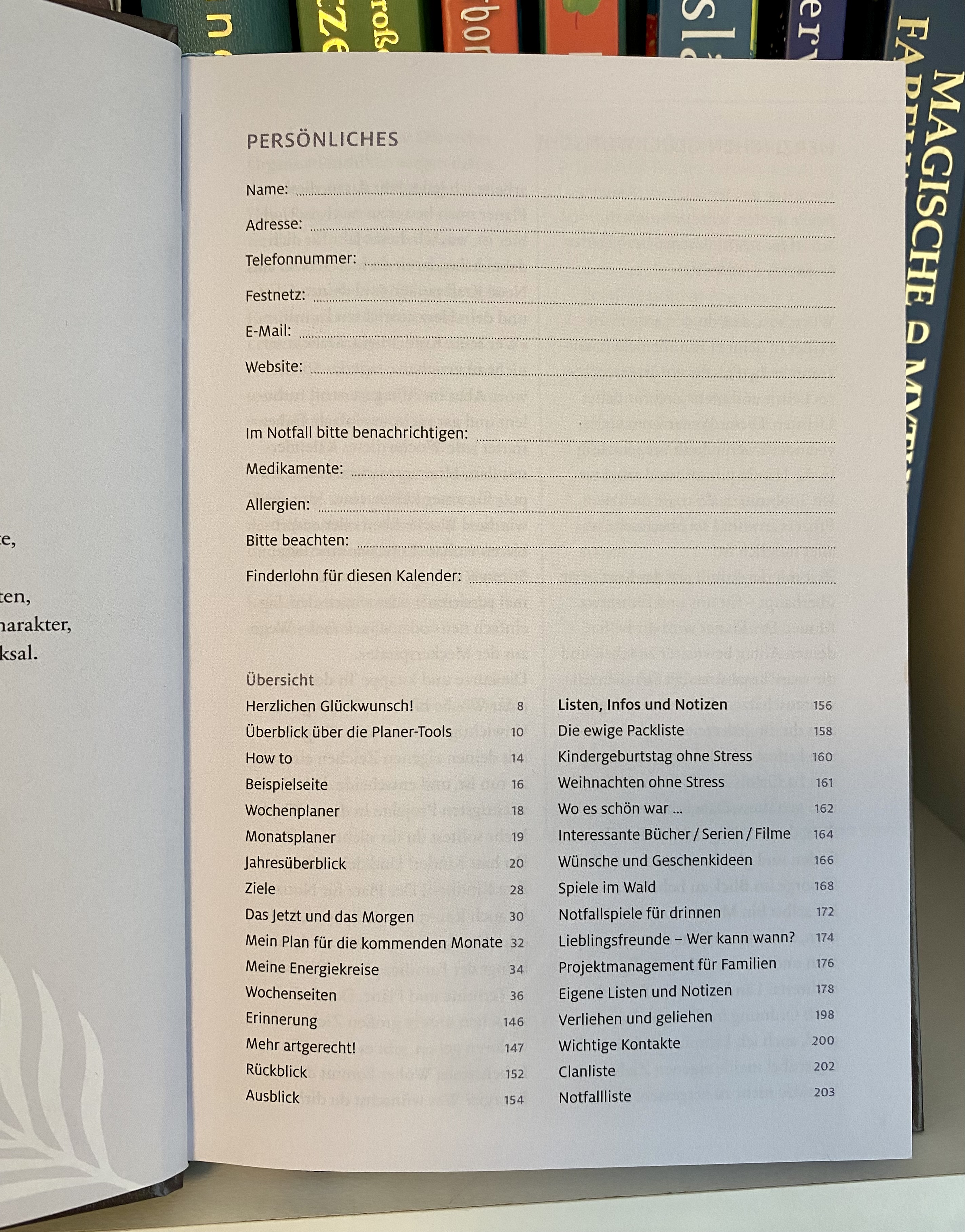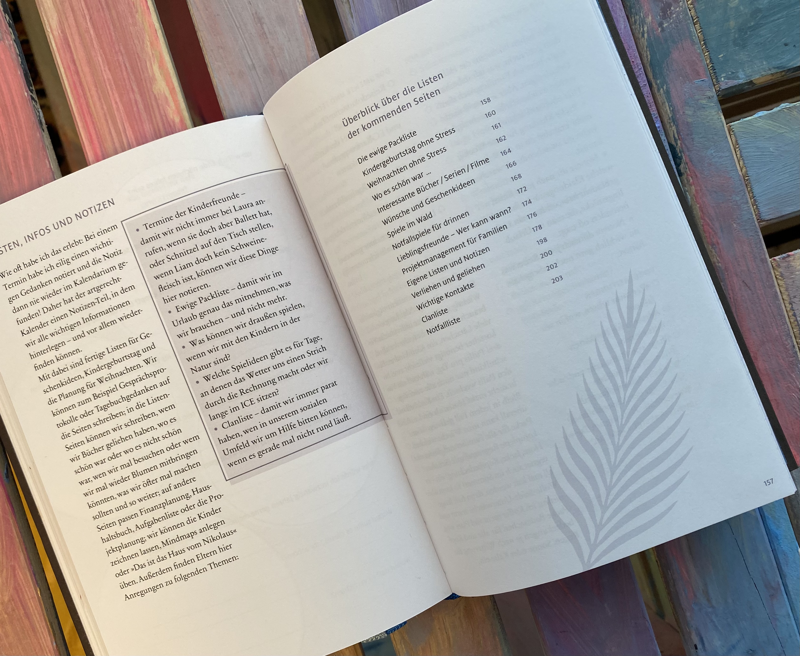 Die Gestaltung des Familienplaners ist ansprechend und durchdacht. Mit seinen übersichtlichen Monats- und Wochenansichten, Platz für Termine, Notizen und To-Do-Listen bietet er eine praktische Möglichkeit, den Familienalltag zu organisieren. Was mich besonders angesprochen hat, sind die Beispiele für Listen – sei es Packliste oder eine Liste wie man einen Geburtstag ohne Stress plant, die waren sehr hilfreich und anregend.