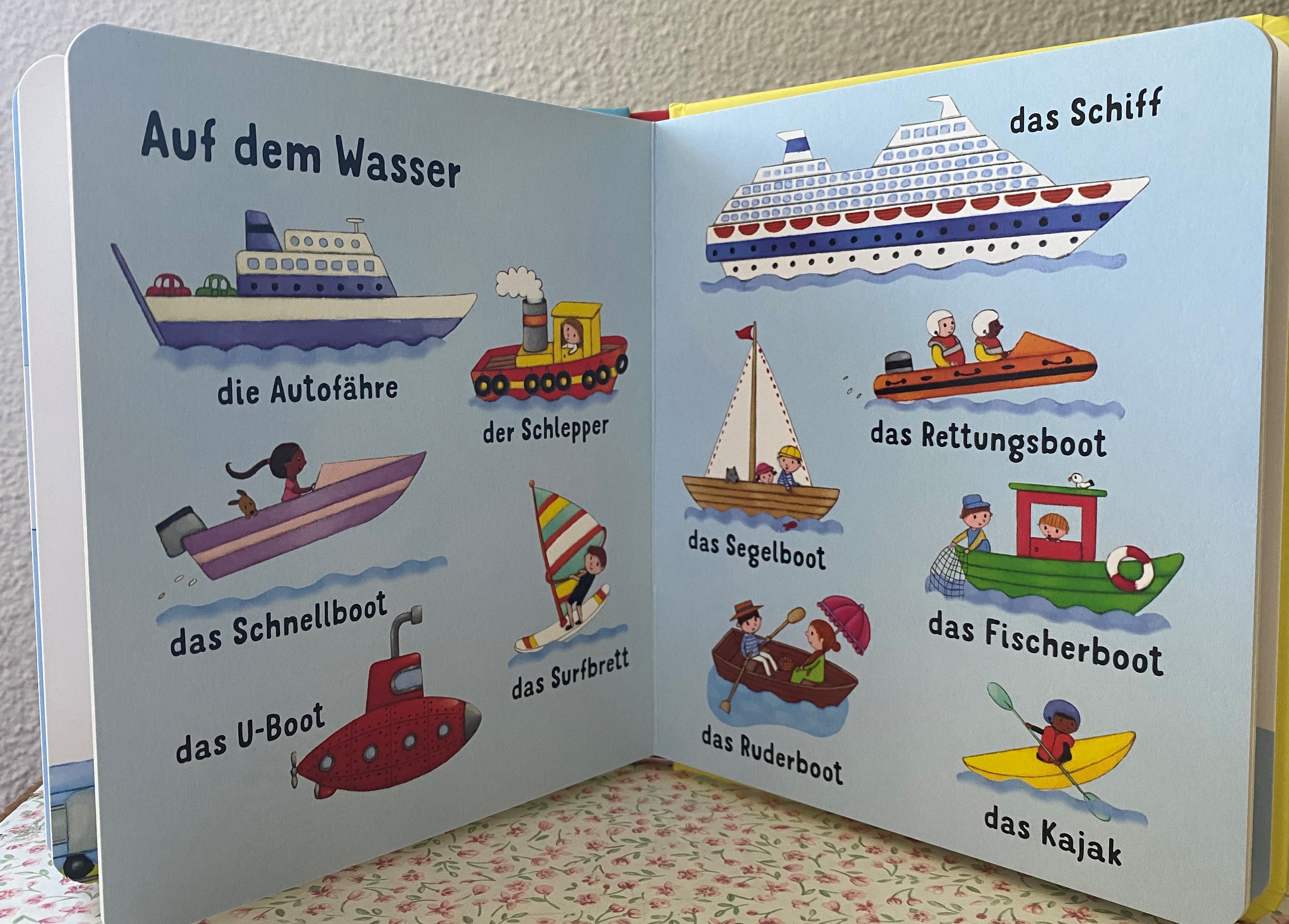 Auto, Bagger, Roller – dieses bunte Bildwörterbuch enthält viele Fahrzeuge aus der alltäglichen Lebenswelt zum Entdecken und Benennen. Ob auf der Straße, auf der Baustelle oder in der Luft – Wort für Wort erkunden kleine Kinder ihre Welt.