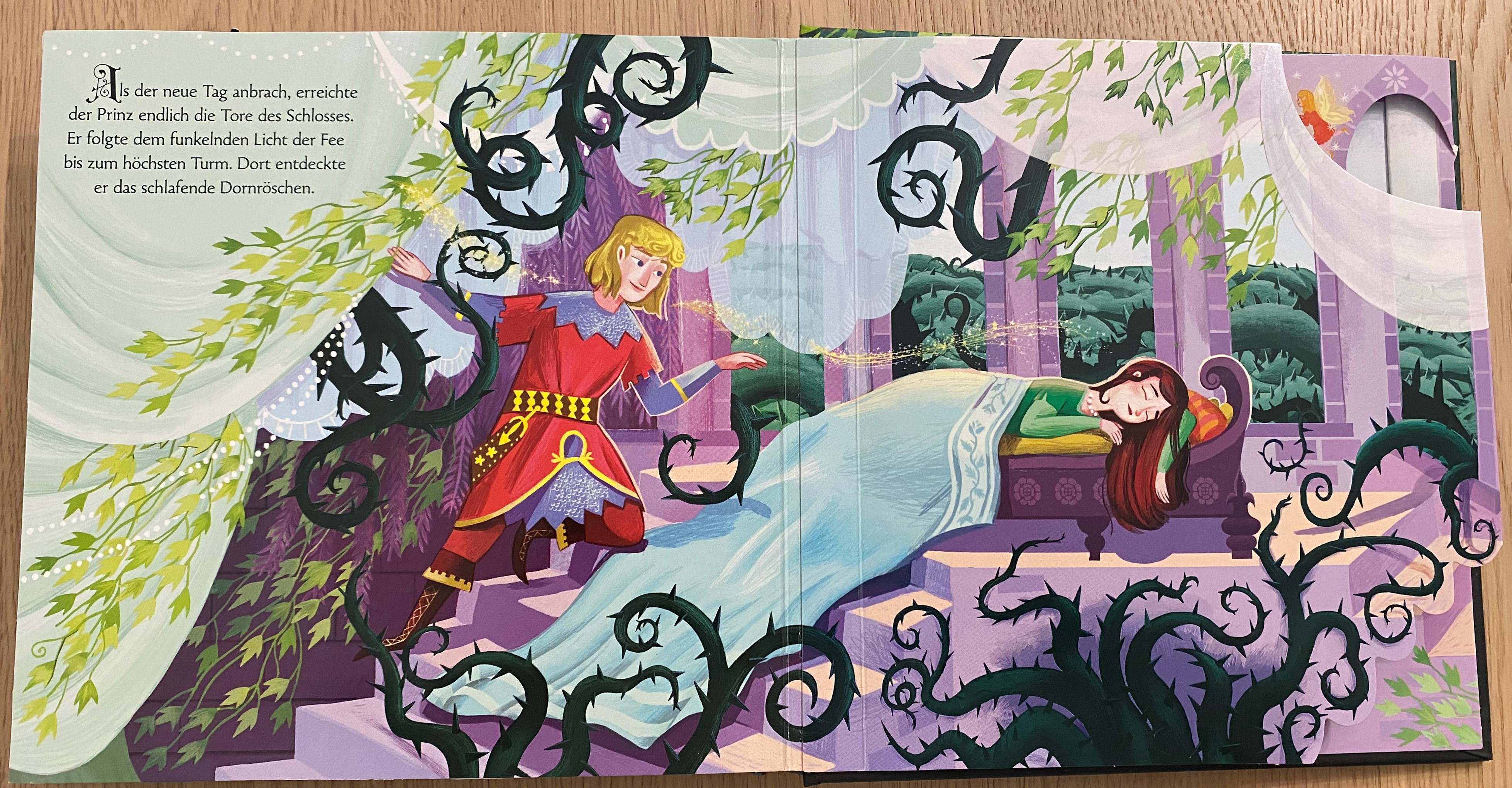 Komm mit ins Märchenland und erlebe die bekannte Geschichte von Dornröschen auf ganz neue Art – mit beeindruckenden Pop-ups!